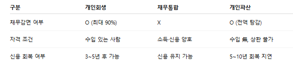 💡 개인회생과 채무통합, 파산의 차이점