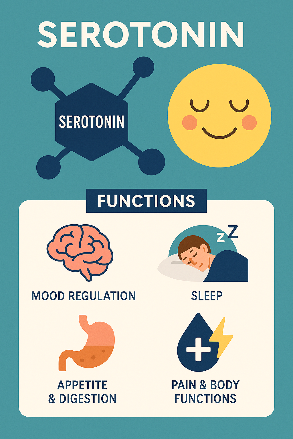 세로토닌은 멜라토닌(수면 호르몬)의 원료가 되어 숙면에 도움을 줍니다. 수면 패턴을 일정하게 유지하는 데 중요한 역할을 합니다.