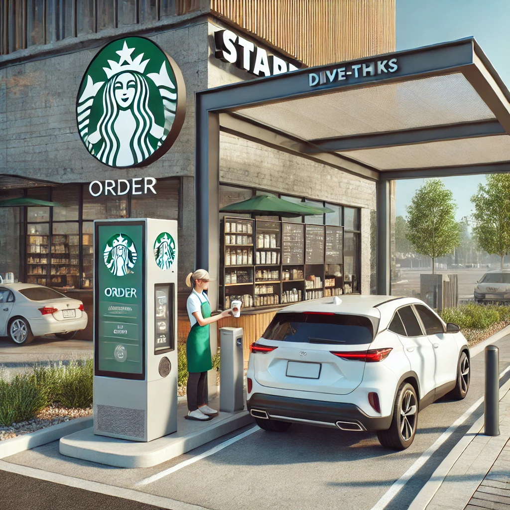 바쁜 아침, 차 안에서 내리지 않고 커피를 주문할 수 있는 스타벅스 드라이브 스루(DT).