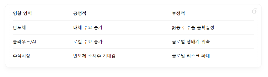 - 관련된 한국 기업(삼성전자, SK하이닉스 등) 단기 투자심리 위축 가능