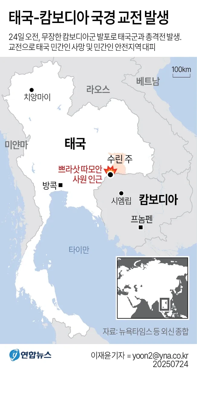 프레아비히어 인근에서 군사 교전 확대, 민간 피해 발생