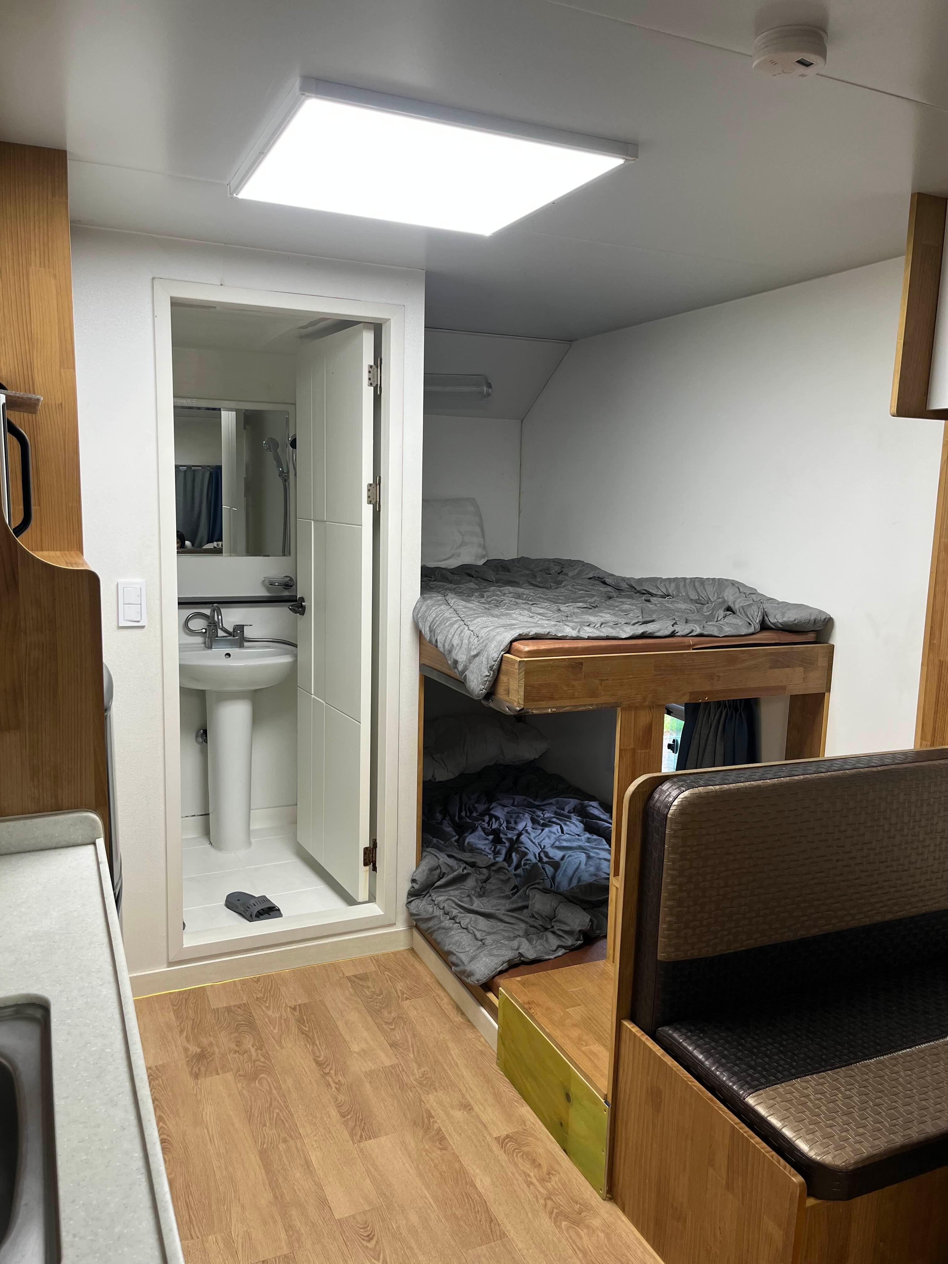 더블침대 하나, 2층 침대 하나, 작은 소파와 주방, 욕실이 있었고