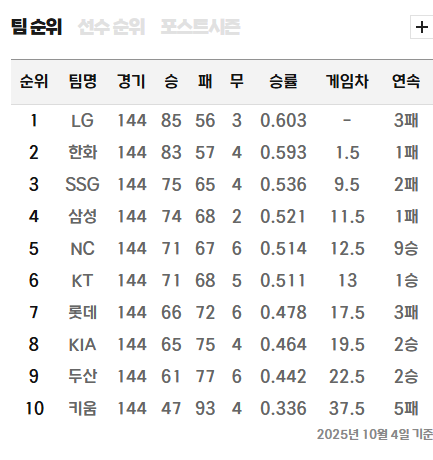 출처: KBO 공식 홈페이지